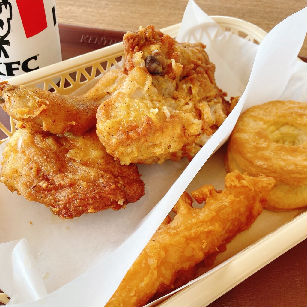 オリジナルチキン3個とクリスピーチキン、ビスケットがついて税込990円。